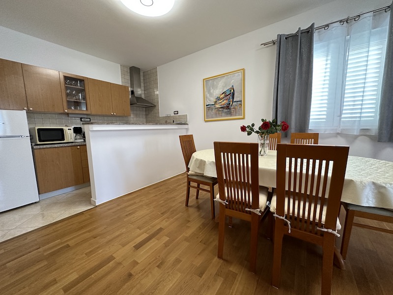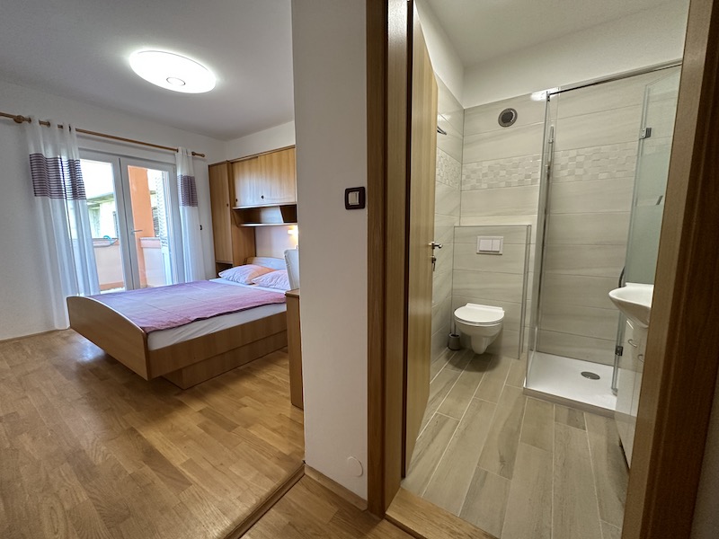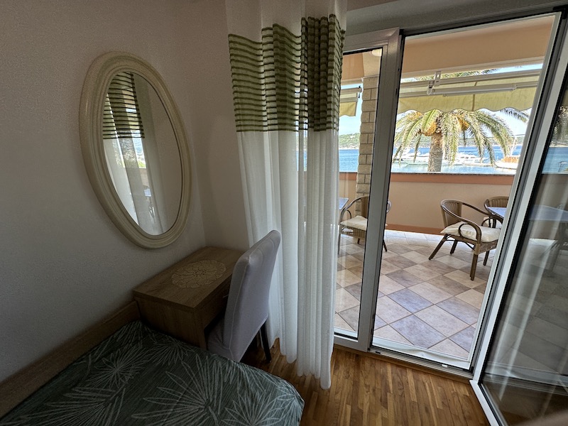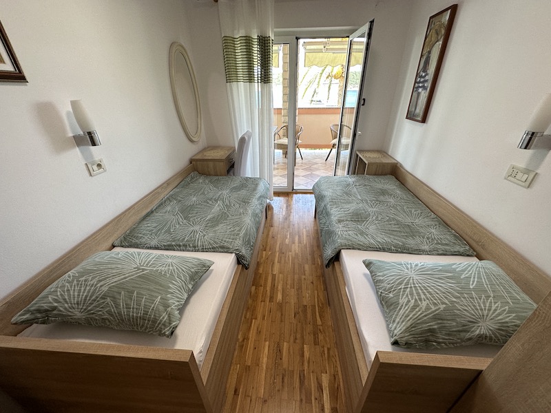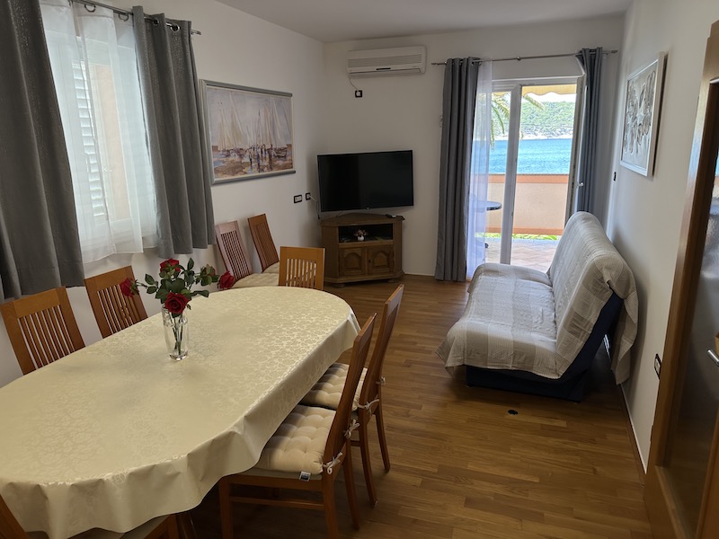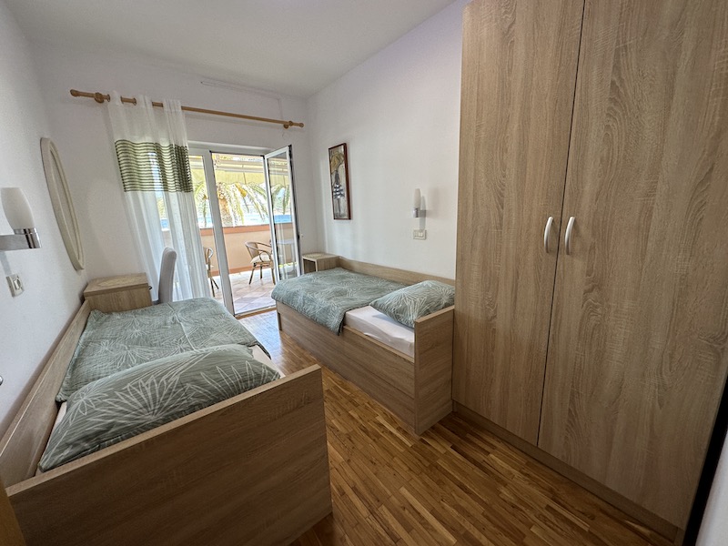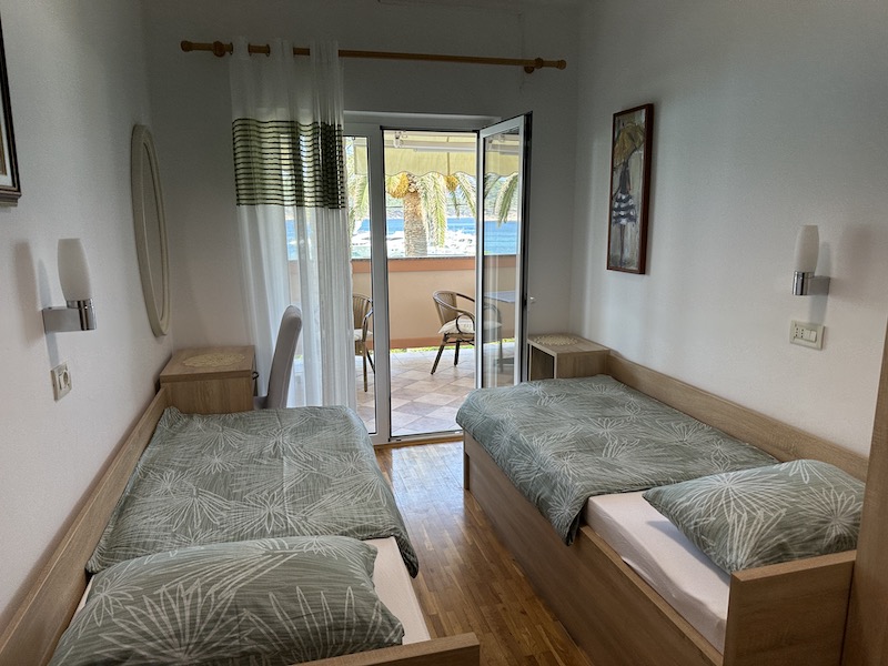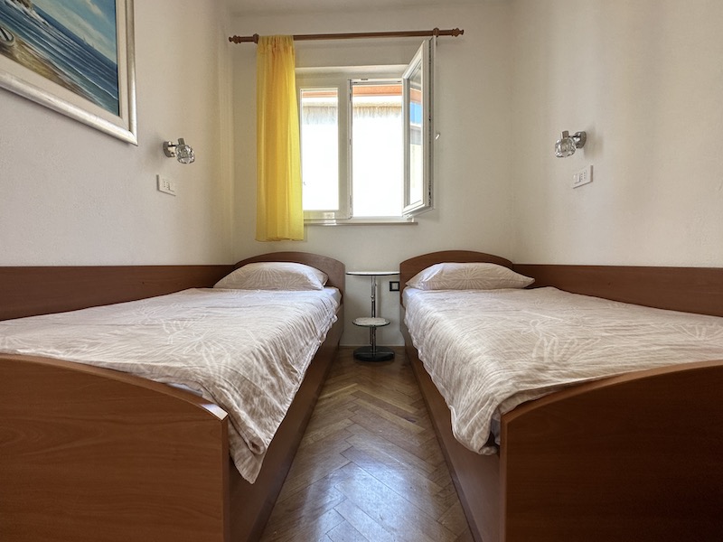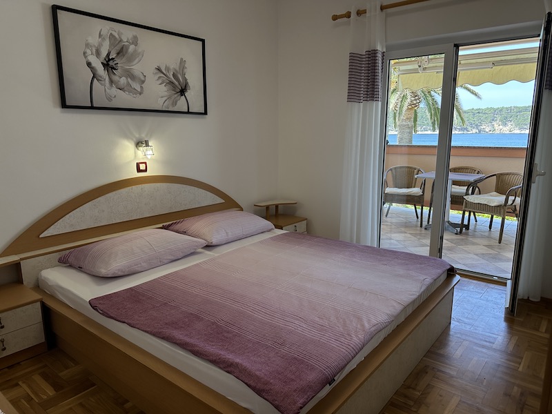 Spacious first-floor sanctuary with a large balcony overlooking the turquoise Adriatic sea. Ideal for large families or groups.